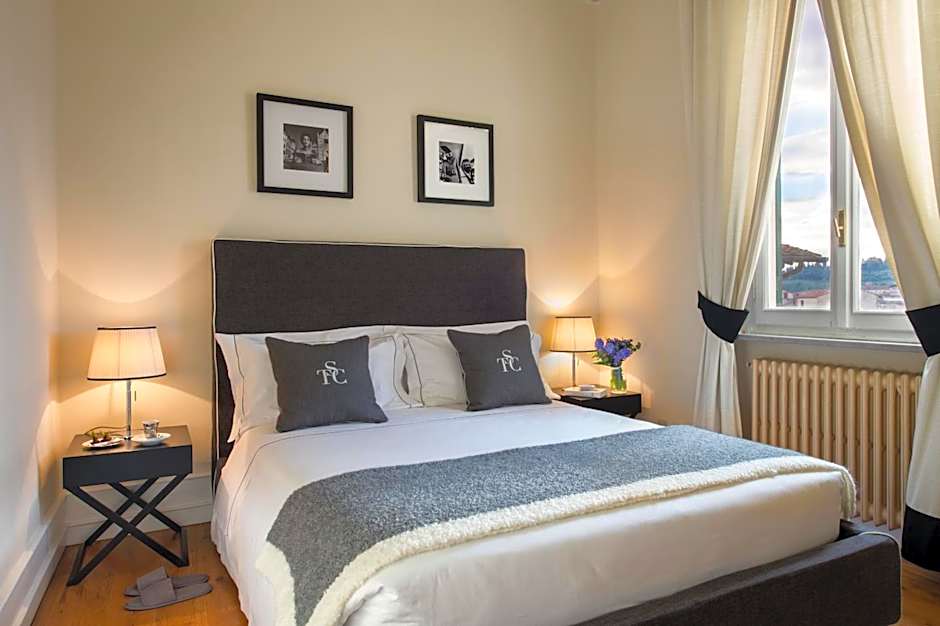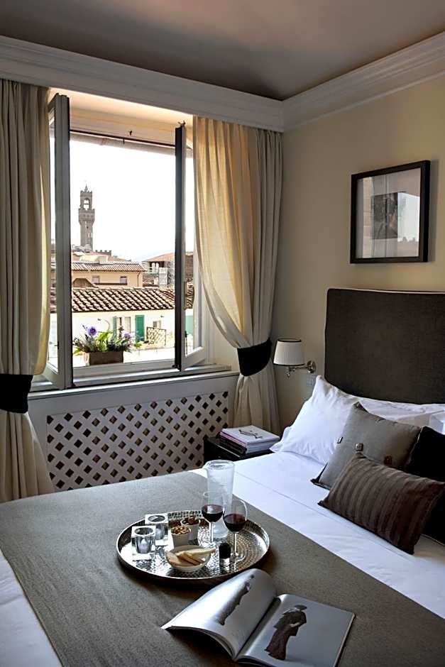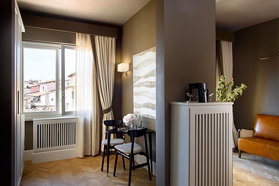 Set on the top floor, this elegant air-conditioned suite features views of Florence's rooftops. It offers a living area with sofa bed, satellite flat-screen TV, and a bathroom with hairdryer and toiletries.